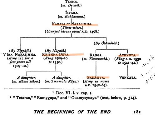 It should be noted that scholars adumbrate that “Tuluva Nrsanayaka had three wives—Thippaji, Nagalamba and Obamamba. Krishnaraya was born as Nagalamba’s only son.” [8, 20]  However, despite the calumny against KDR, his mother actually was a noblewoman herself and was duly married to his father.