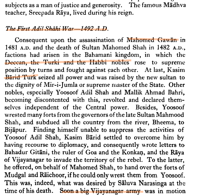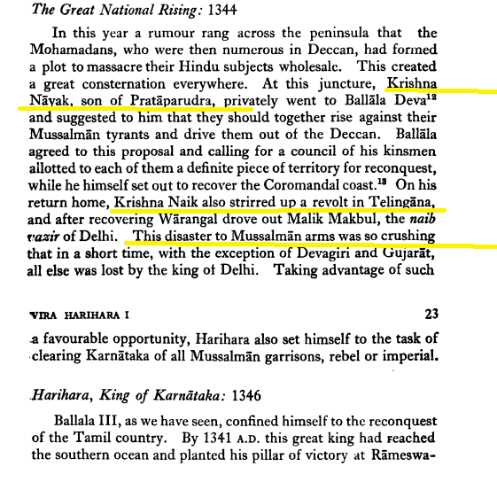 Vijayanagara’s founding was precipitated by the volcanic vidharmi rise of the Delhi Turks. The Khiljis had managed to disrupt the Dakshinapatha itself and laid most and eventually all of it to tribute at some point.  Andhra Desa’s Kakatiya dynasty was disrupted by 5 Wars (though local records indicate 8 wars and many Telugu victories).