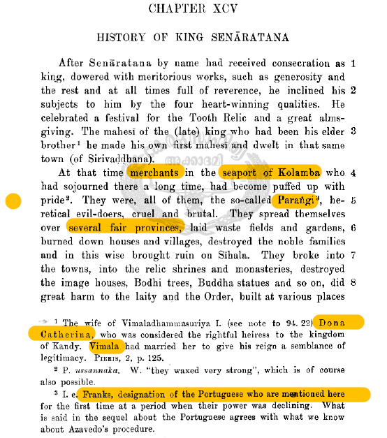 The history of the Sinhalese polity can be summarised as periodic subsidiary unity, occasional invasion, and retreat to refuge of Rohana. In this manner, Sri Lanka has for much of its history evaded foreign rule. Though foreign domination under the Dutch (Olandas) and portuguese (parangis) became logistically inevitable, the fire of resistance remained in the heart of the islanders, throughout their upheavals. Incidentally, both along with the english (Ingireesi) are mentioned in this chronicle, giving us rare insight into native views of conflict with invaders.